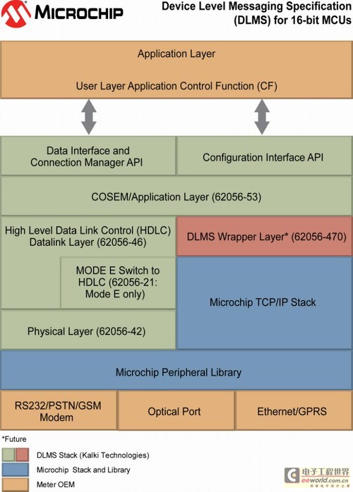 這個軟件協(xié)議棧已經(jīng)通過DLMS用戶協(xié)會的測試和驗證,并經(jīng)定制,可在所有Microchip 16位PIC單片機和dsPIC?數(shù)字信號控制器(DSC)上運行,使DLMS認證過程更快捷簡單。此外,協(xié)議棧經(jīng)過開發(fā),已經(jīng)可以確保與TCP/IP、ZigBee?和PLC等Microchip通信協(xié)議棧的無縫集成,涵蓋了各種智能能源應用。經(jīng)優(yōu)化的DLMS協(xié)議棧所占用的存儲空間小,能夠盡可能實現(xiàn)具有成本效益的MCU應用。對于歐洲的應用,該協(xié)議棧能夠為實現(xiàn)必需的IEC 62056-21 Mode E提供支持。